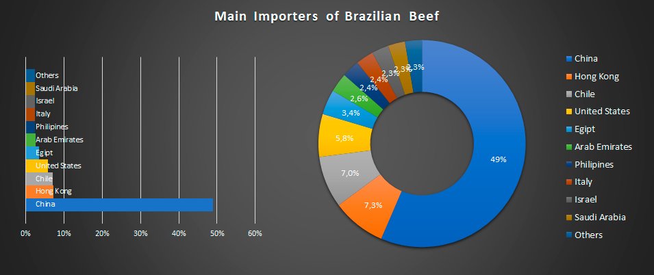 Although it reduced its imports from 1,182,673 tonnes in 2020 to 950,057 tonnes in 2021, China remains the biggest buyer of Brazilian beef, through the movement carried out by the city-state of Hong Kong and through purchases made by the mainland.