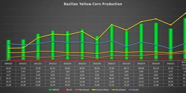 In the 2021 harvest, in most of the Federation Units that are important in the production of the cereal, the weather hampered the development of the second harvest crops. In addition, the agricultural year was delayed, shortening its “planting window”, which also helped to reduce production, as it left the crops more exposed to rainfall restrictions during the production cycle. For 2022, a more beneficial climate situation is expected for the second corn crop, when compared to 2021. The agricultural year was not delayed and soy planting was carried out, for the most part, at the ideal time, which favored the “planting window” for second crop corn. Production growth is expected in the main producing states.